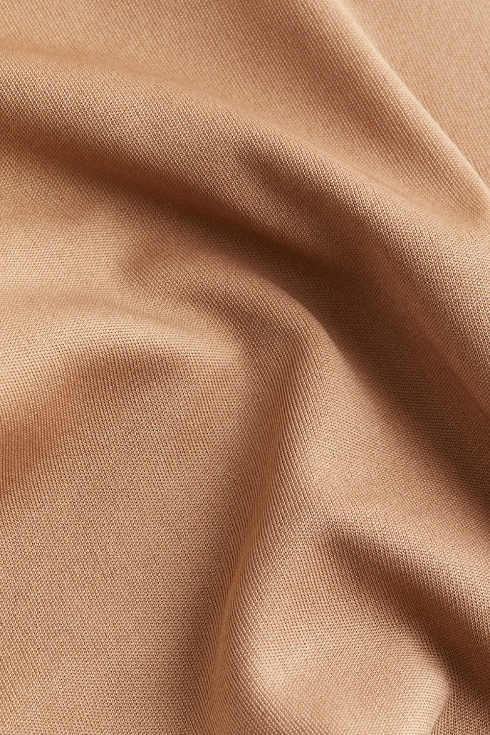 Short, asymmetric skirt in jersey. High waist and elasticized waistband. Visible seam at upper section with a pleat at front for a flared silhouette.
