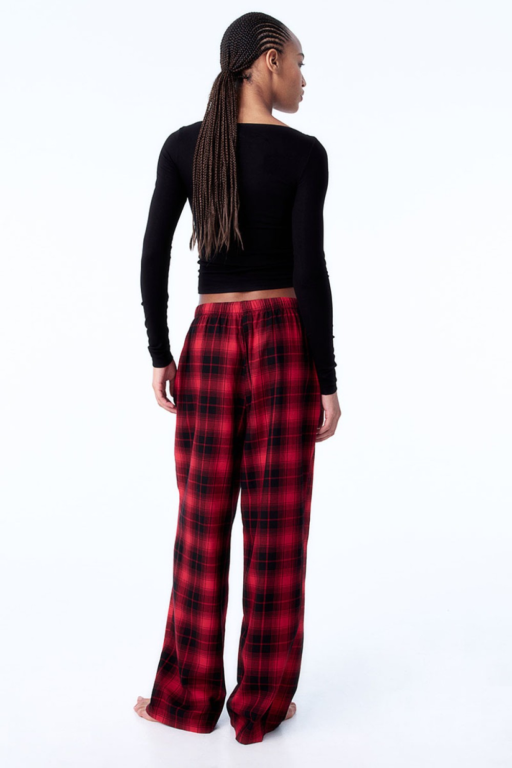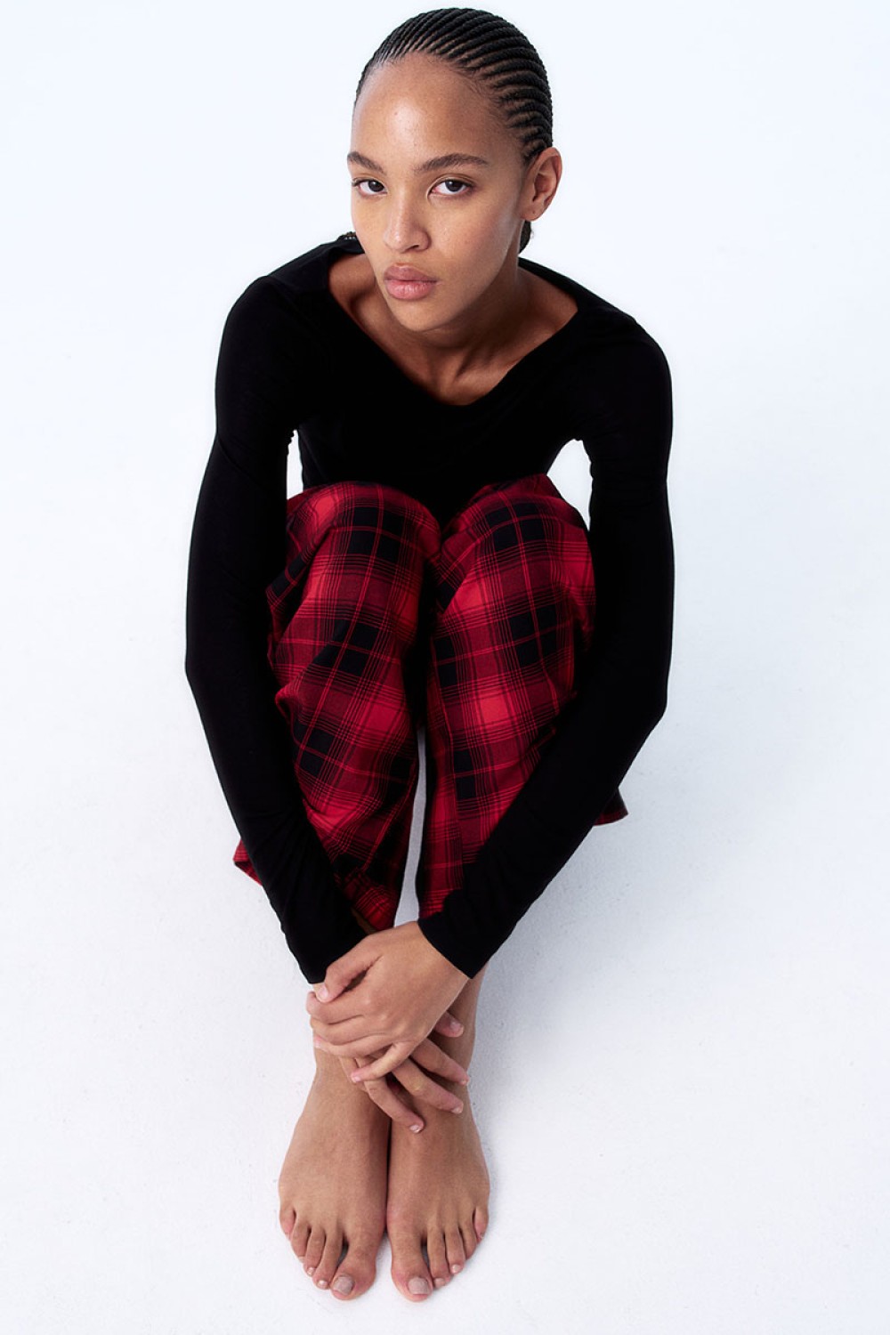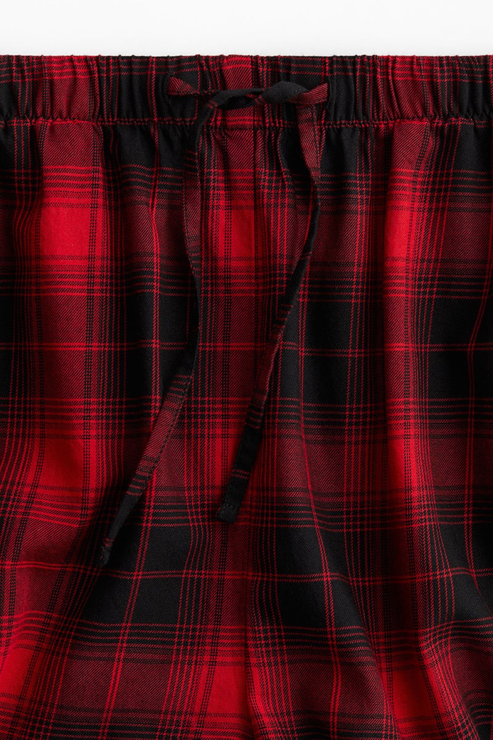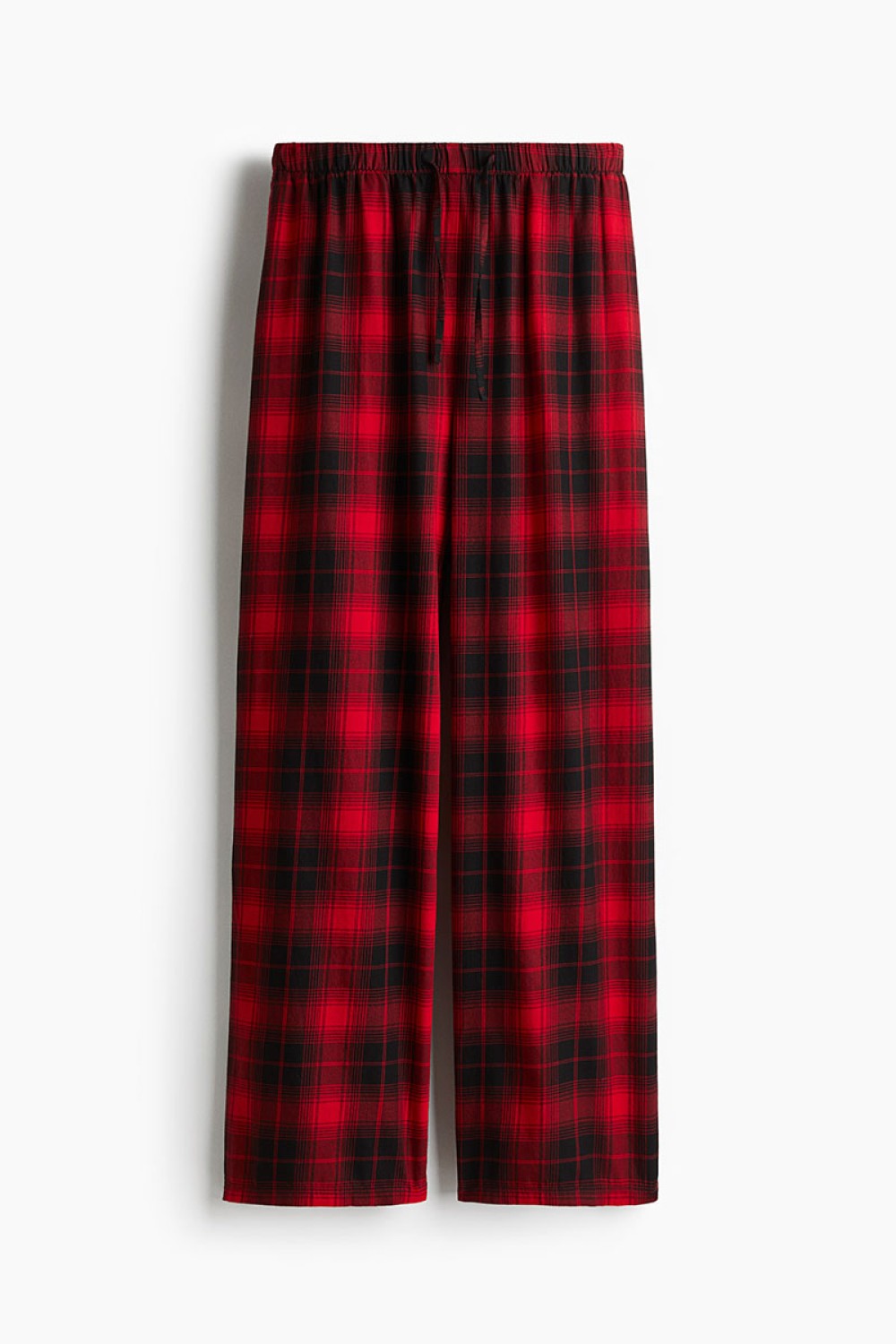 Loose-fit pajama pants in soft cotton flannel. High waist, waistband with drawstring and covered elastic, and discreet side pockets. Wide legs.
