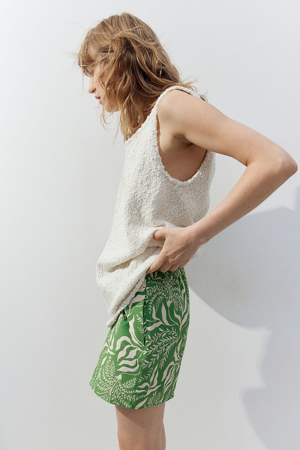 Loose-fit shorts in woven fabric. High waist, narrow drawstring and covered elastic at waistband, and discreet side pockets.