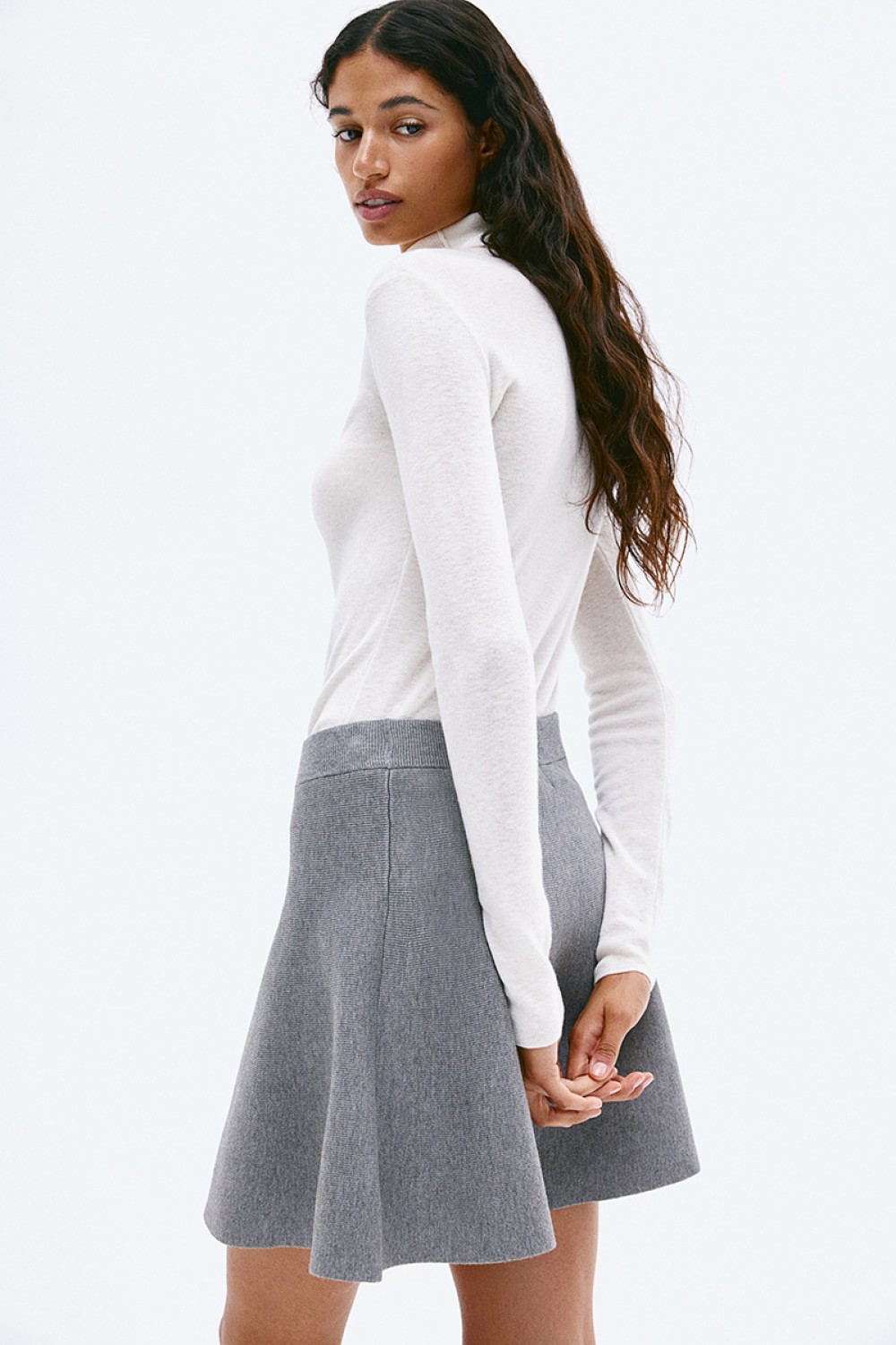 Short, loose-fit, flared skirt in a soft knit. High waist and elasticized waistband.