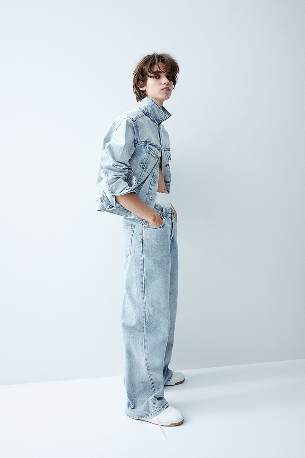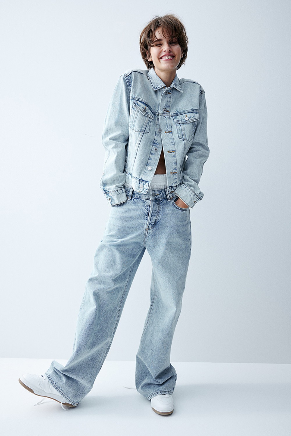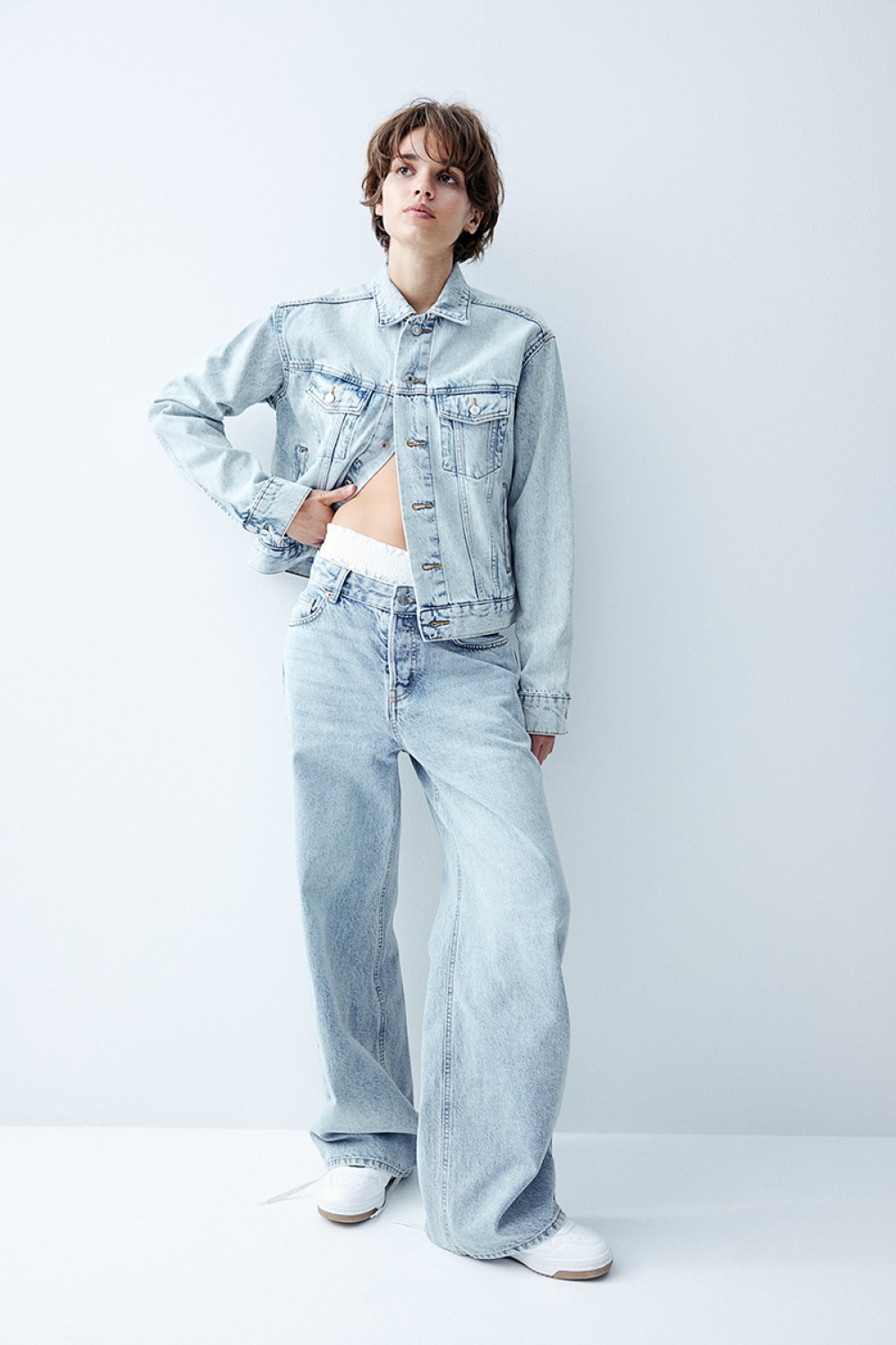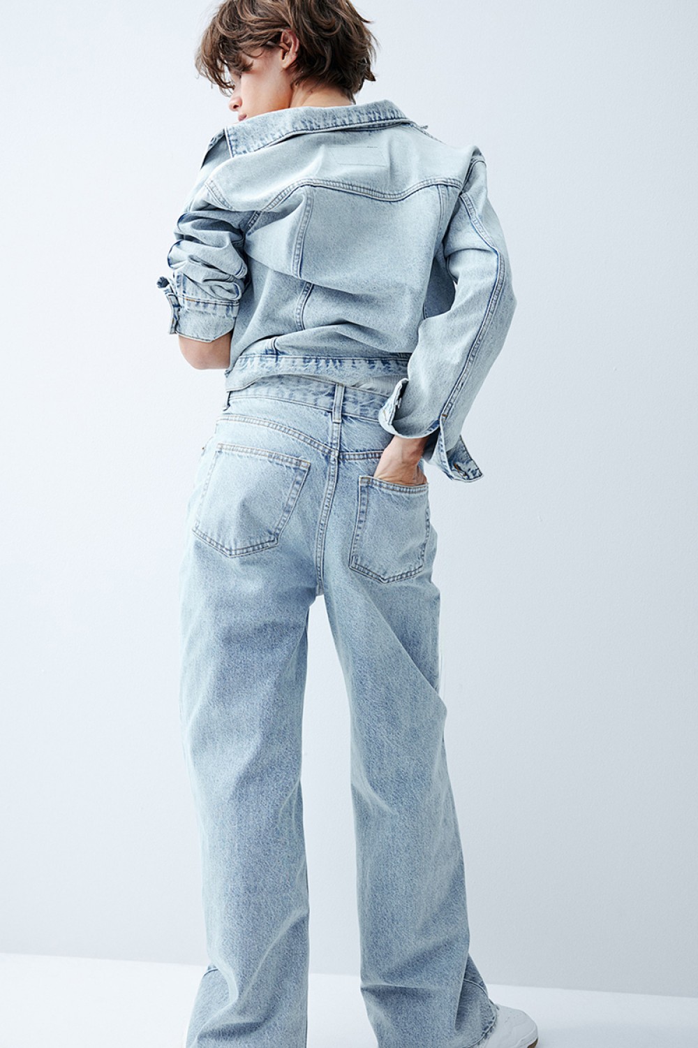5-pocket jeans in cotton denim. Regular waist and wide legs.