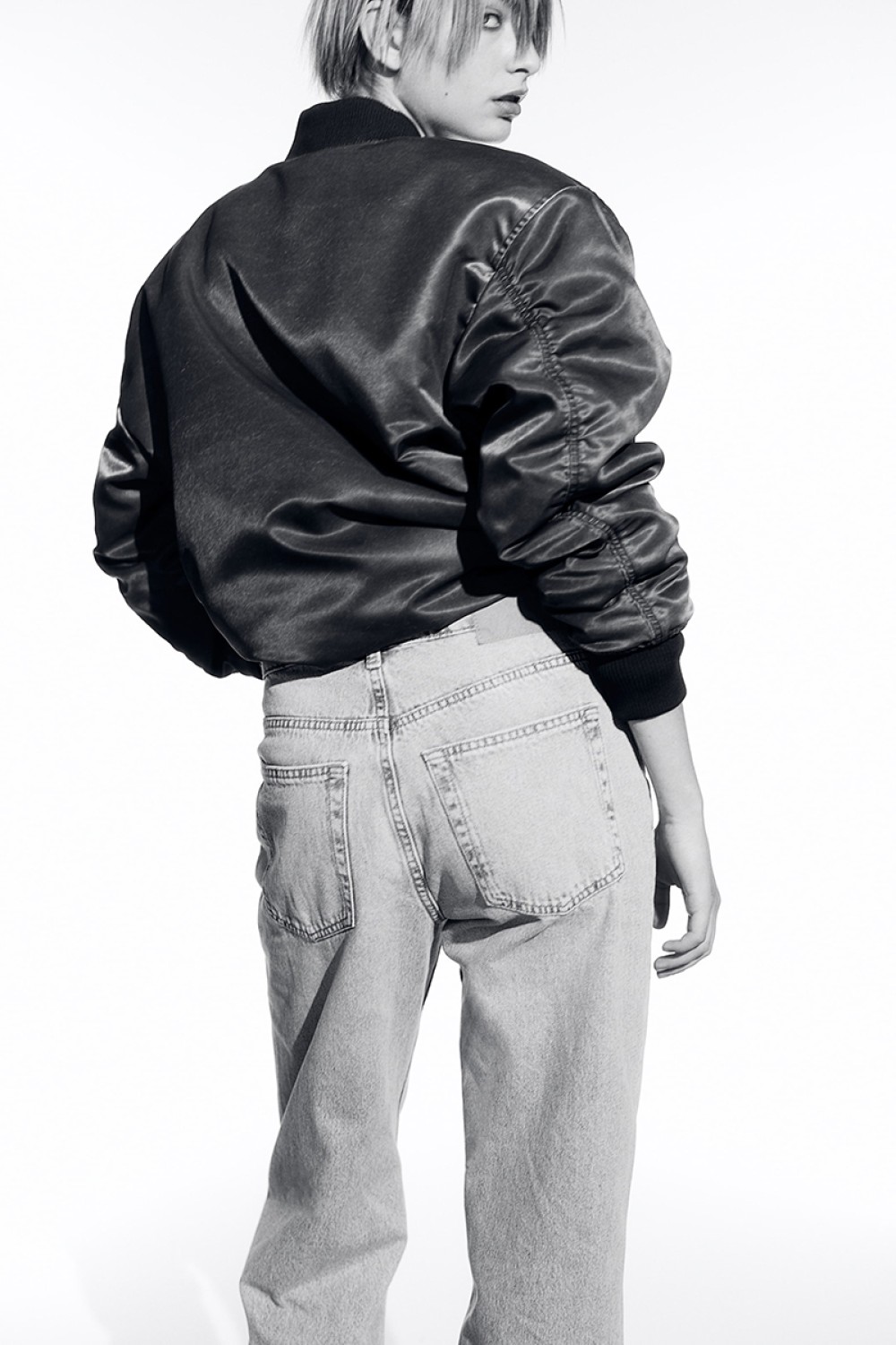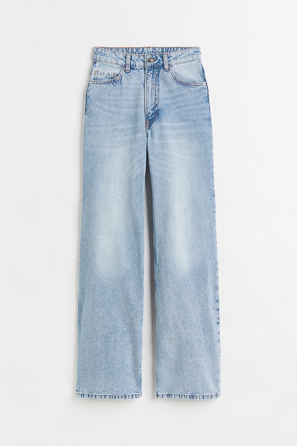 5-pocket jeans in washed cotton denim. High waist, zip fly with button, and straight, wide legs.