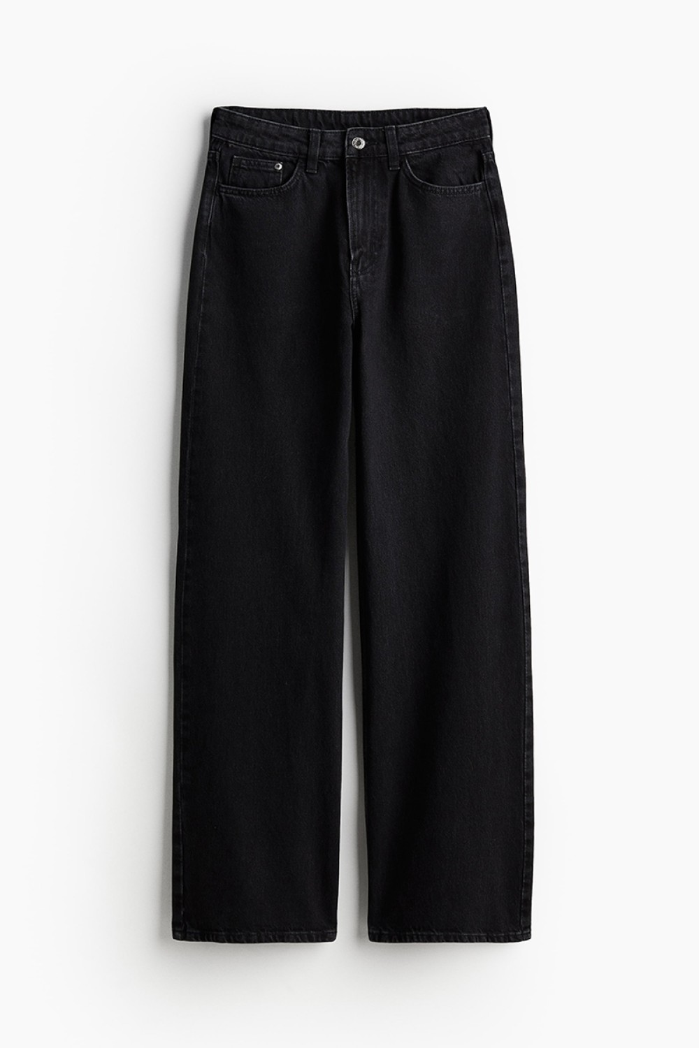5-pocket jeans in rigid cotton denim that feels firm at first, softening and relaxing with wear. Regular fit from waist to hip and straight, wide cut from thigh to hem. Extra-high waist and zip fly with button. Straight, regular-length legs, designed to fall at top of foot with little or no stacking. The wide-leg jean is a wardrobe essential.